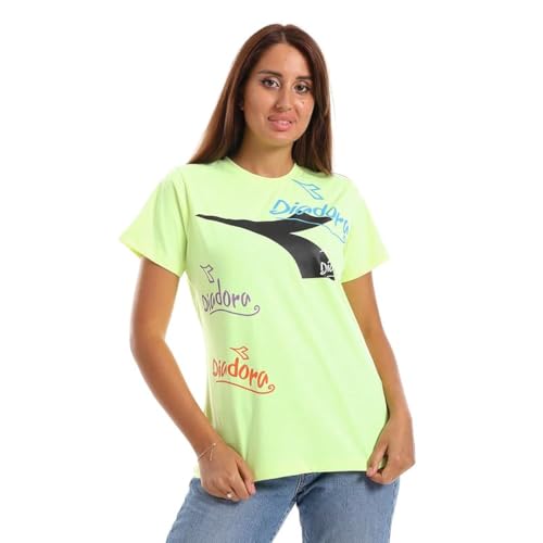 Diadora - تيشرت قطن مطبوع للنساء مقاس XXL لون اصفر نيون