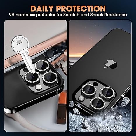 Generic - Diamond Camera Lens Protector for Iphone 16 Pro, 16 Pro Max, Black Titanium Color