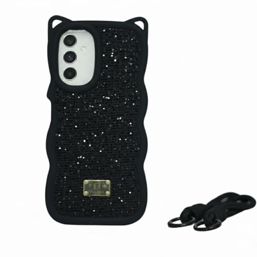 ELMO3EZZ - Diamond Glitter Case for Samsung A35, Luxury Crystal Wavy Glitter Soft Silicone Case (Black)