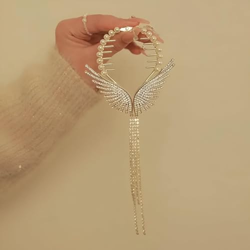 - This elegant horse-tail hairpin features intricate angel wings and a stylish tassel design, making it a perfect accessory for women and girls of all ages. Its luxurious appearance, adorned with diamond-like accents, elevates any hairstyle, whether it's a casual look or an elaborate updo for special occasions.