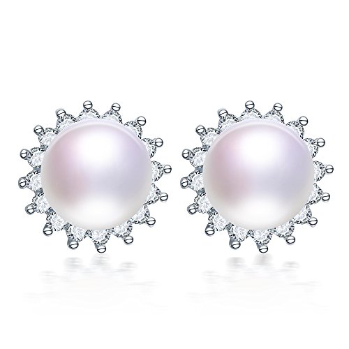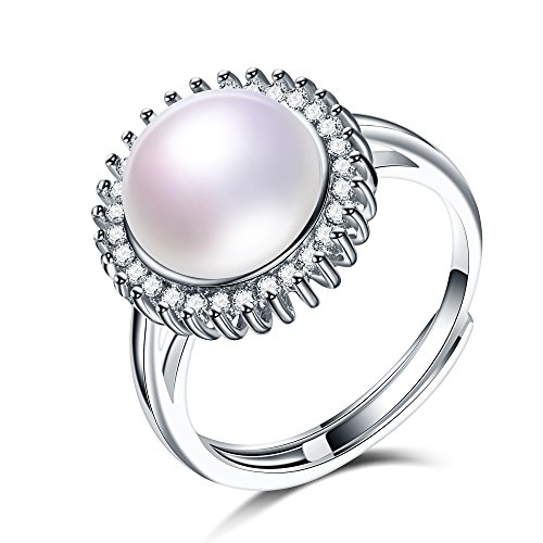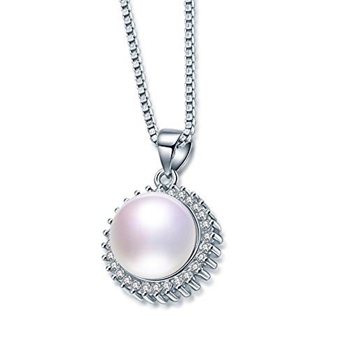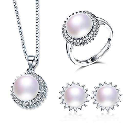 DIAMOVI - طقم مجوهرات فاخر للنساء من دياموفي - عقد وحلقان وخاتم من لؤلؤ المياه العذبة الطبيعي 100% - فضة استرليني 925 مع تصميم شمس - سلسلة 45 سم مع لؤلؤ 8-9 ملم، متعدد الألوان