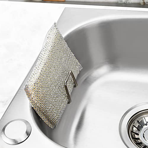 Diampure - 2 PCS Adhesive Sponge Holders for Kitchen Sink, Quick Drying Holder, SUS304 Stainless Steel Rust-Proof and Waterproof (Silvery)