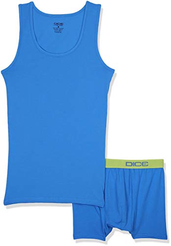 Dice - طقم فانلة داخلية بدون أكمام وسروال داخلي بخصر أستك متباين من دايس مجموعة ملابس داخلية للرجال، لون تركواز، مقاس XXL