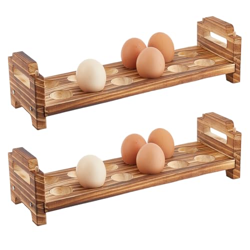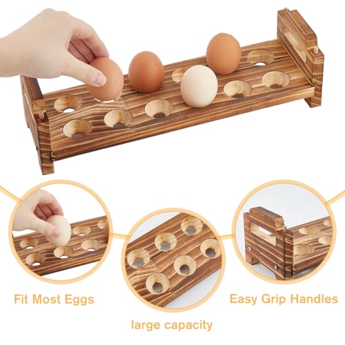 DICOSMETIC - DICOSMETIC 2Pcs Wood Eggs Holder Stackable Egg Storage 12 Slots Egg Countertop Wooden Eggs Organizer with Carry Handle BurlyWood Display Rack for Home Kitchen Duck Turkey