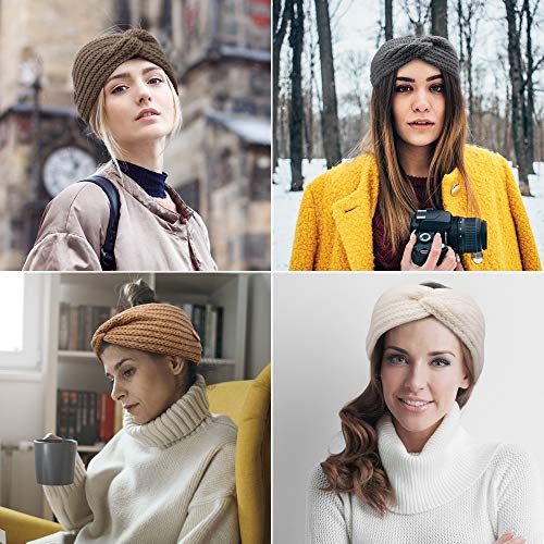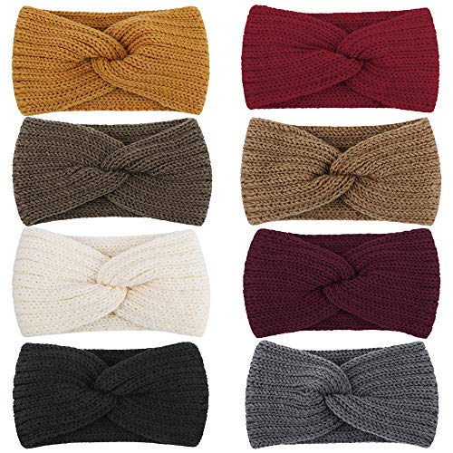 Didder - Didder 8 Pieces Winter Headbands for Women Ear Warmer for Women Soft Knitted Crochet Turban Headbands Womens Winter Headbands Headwrap Warm Braided Hair Bands Button Headbands for Women Girls