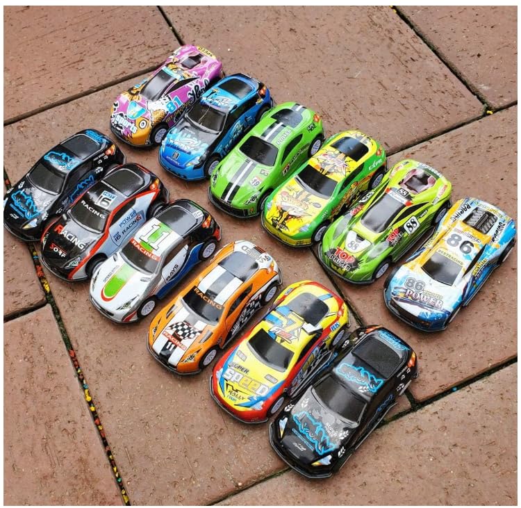 - Number : 12 race cars in assorted shapes and designs (colors and models come randomly). Size:One car dimension approx 7cm(L) x 3cm(W). EASY TO CARRY: Perfect size for children 2 to 6 years old, you can easily put in pocket and carry anywhere.