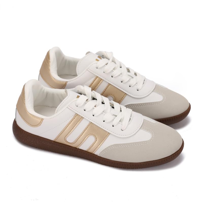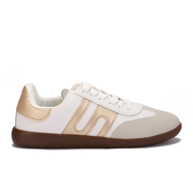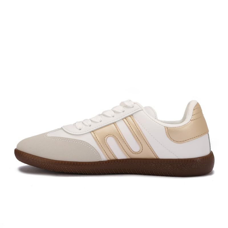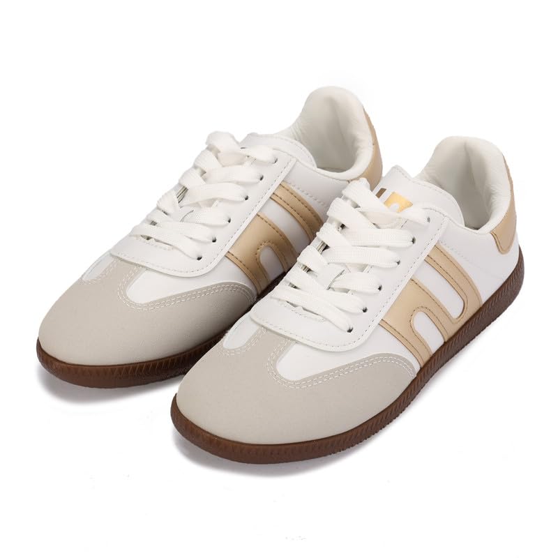 Diffindo - حذاء رياضي كاجوال رترو خفيف الوزن برباط للنساء من ديفيندو، مقاس 41 - بيج وذهبي