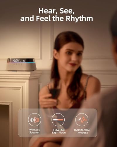 - 🌈【Customizable RGB Night Light】Choose between soft warm light or vibrant RGB effects that pulse to your music. Hold the right side of the clock for 3 seconds to toggle light modes—perfect for relaxing or setting the mood.
