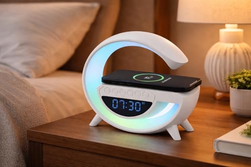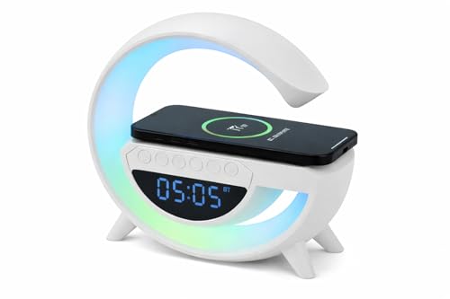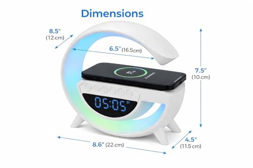 - Multifunctional Design: Digital Alarm Clock with Clear Blue LED Display, Colorful Ambient Light, Built-in Wireless Charger for Compatible Smartphones