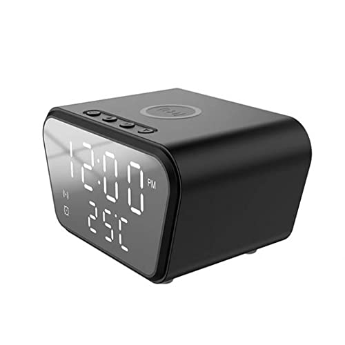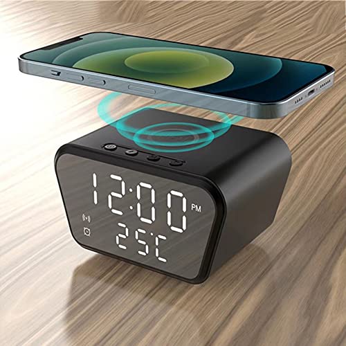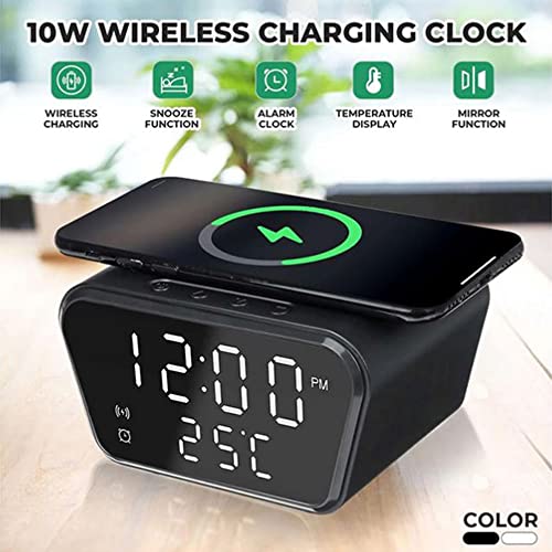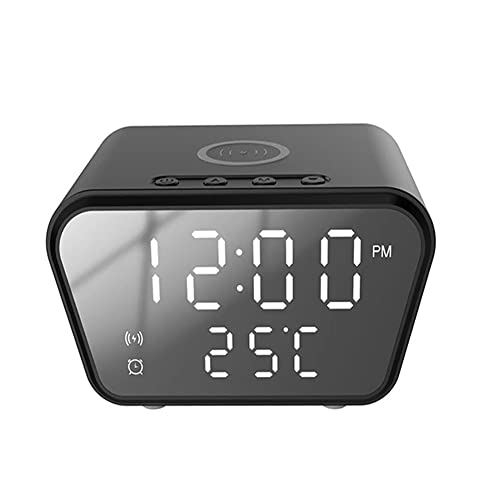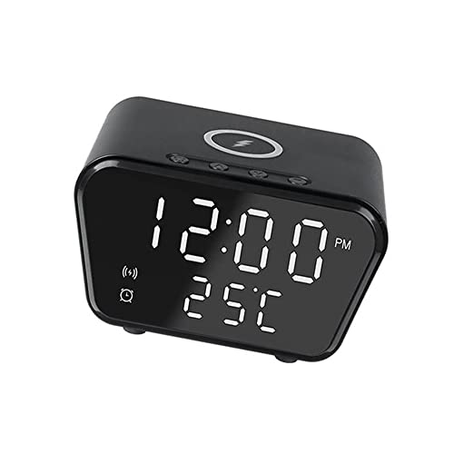 Generic - ساعة منبه ديجيتال مع خاصية الشحن اللاسلكي ، شاشة LED سطوع قابلة للتعديل عرض وقت - موديل ZS-02 / لون اسود، الومنيوم