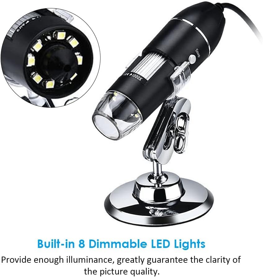 - 1080P high-definition picture quality, 500x /1000x /1600x magnification, to meet your daily needs. Equipped with a stable stand, it is easier to fine-tune the height and angle.