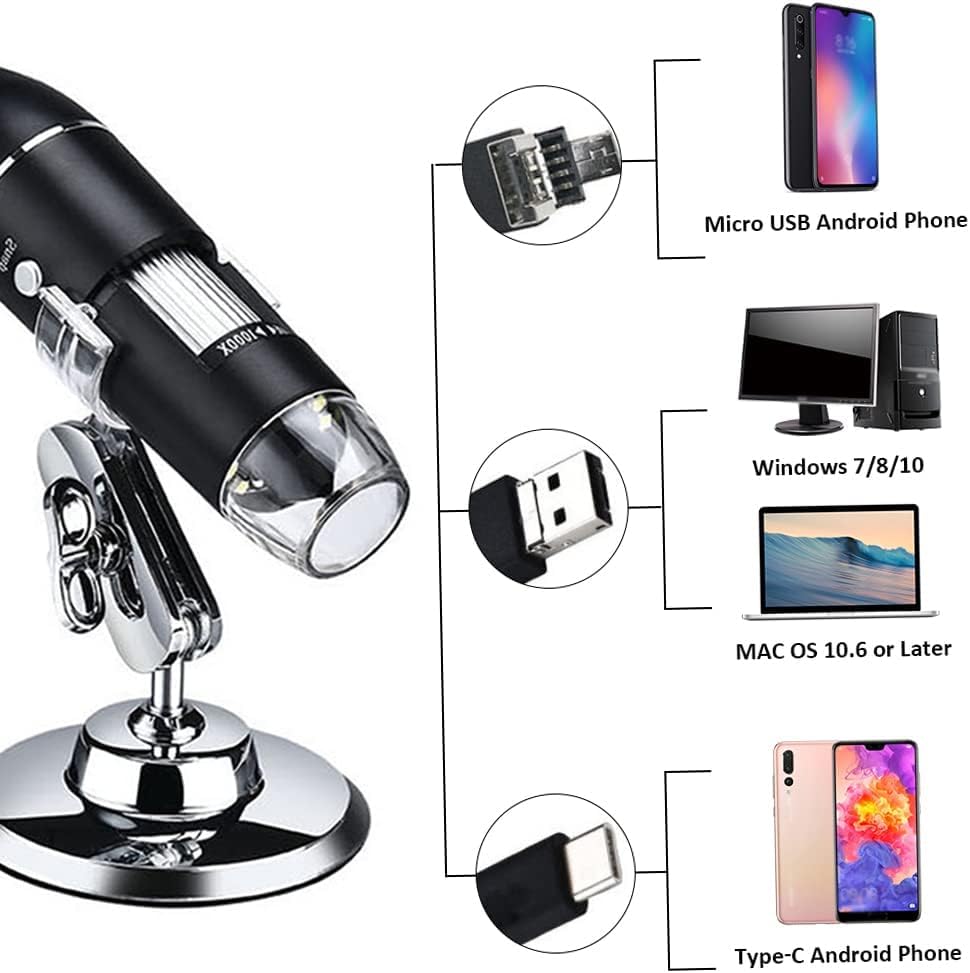 Generic - Digital Microscope 3 In 1 USB & MICRO USB &Type-C Digital Microscope 1600X Magnification Camera 8 LEDs with Stand Compatible with An-droid Win-dows/XP Win 7 8 10 Vista Linux M-AC