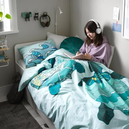 Digital Shoppy - Digital Shoppy BLÅVINGAD Duvet Cover and Pillowcase 150x200/50x80 cm (59x78 3/4/20x31) (Turtle Pattern/Turquoise)