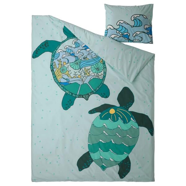 - Package(s):1x Duvet cover and pillowcase, turtle pattern/turquoise, 150x200/50x80 cm