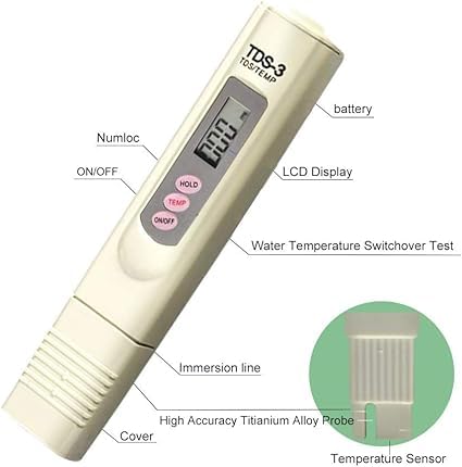 - مناسب لأي نوع من اختبارات تي دي اس أو اي سي تحقق من المواد الصلبة الصلبة المذابة أو اي سي لحوض السمك أو حمام السباحة أو أي مصدر للمياه. يمكنك تحديد فعالية وحدة التقطير أو دي اي أو وحدة التقطير، والتحقق من مستويات المغذيات في إعداد الزراعة المائية، وأكثر من ذلك.