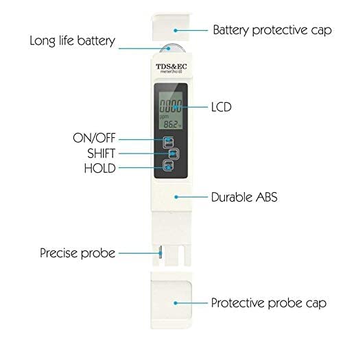 Other - Digital Water Purity Tester Pen with TDS/ATC/EC & Temp Functions (White)
