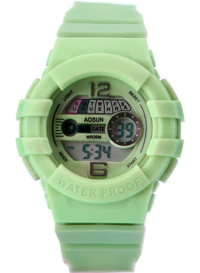 generic - digital wrist watch – sillicon strap -side buttons-light green color