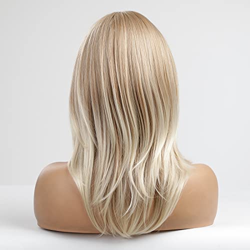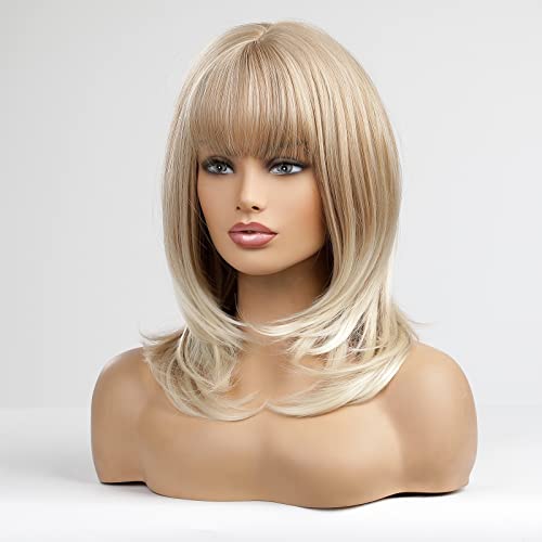 DILLARDS - باروكة الانهير شقراء للنساء من ديلاردز، بطول الكتف مع غرة، مصنوعة من ألياف صناعية مقاومة للحرارة بنظام الطبقات