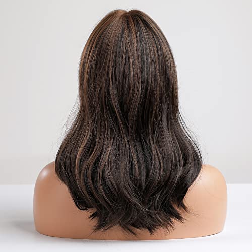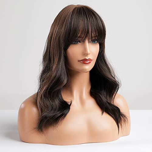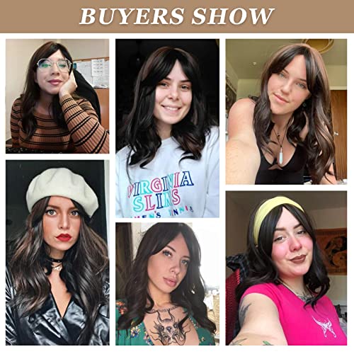 DILLARDS - ديلاردز شعر مستعار بني للنساء من الانهير، شعر مستعار صناعي طويل مجعد بطول الكتف مع غرة 18 انش، Alan-Lc250-2