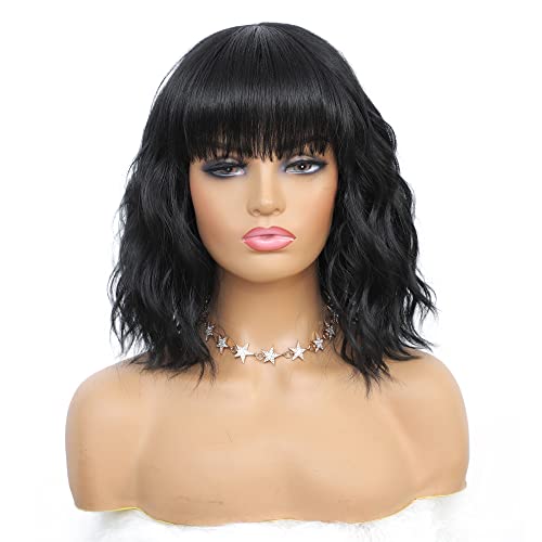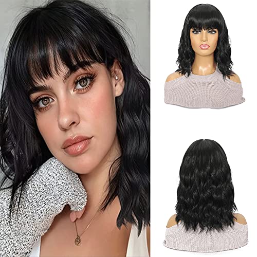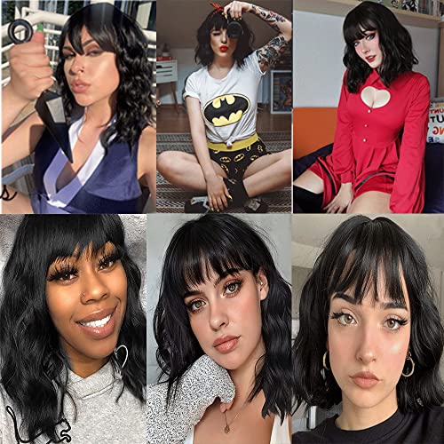 DILLARDS - DILLARDS Duacorn Hair Bob Curly Wig Synthetic Short Black Wig With Bangs Natural Looking Heat Length Synthetic Curly Resistant Fiber Hair For Women (14 Inch