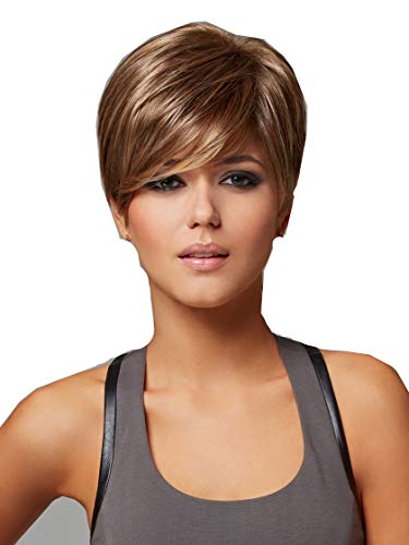 DILLARDS - ديلاردز شعر مستعار انيق ومنفوش قصير مفرود للنساء بلون بني Sw0096