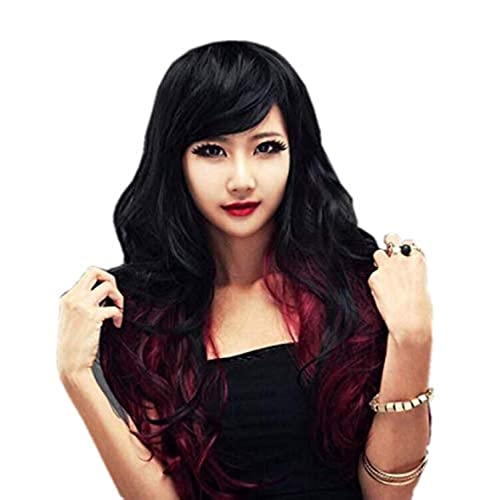 DILLARDS - DILLARDS Fashion Wig Femininity Women's Anime Cosplay Black Gradient Wine Red Hair