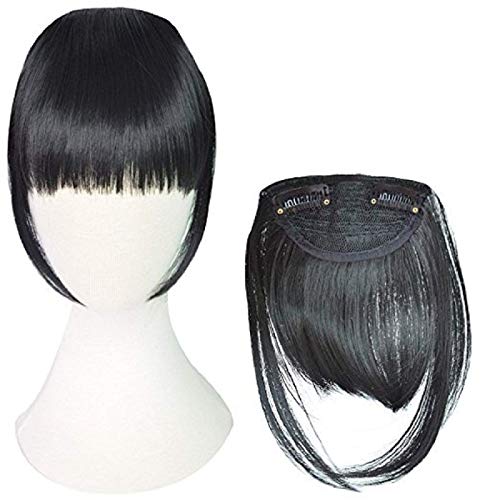 DILLARDS - وصلات شعر فورين هوليكس للغرة أمامية بملمس حقيقي ومشبكين لتطويل الشعر للنساء من ديلاردز، لون أسود