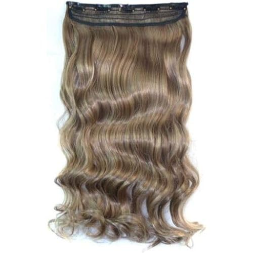 - وصلة شعر صناعي طويل مموج مع 5 مشابك من ديلاردز، لون بني أشقر كراميل.