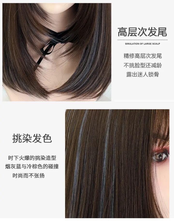 - اللون والأناقة: درجة لون بني غامق وعميق، مع ملمس مستقيم ولامع، وقصة متقنة ذات طبقات لزيادة الكثافة والحركة.