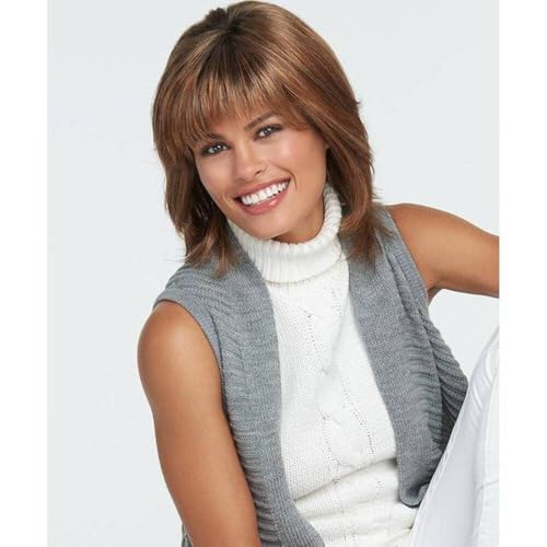- Loose bangs brush your brows and showcase your eyes. Tousled layers keep it free and easy with sheer indulgence monofilament top