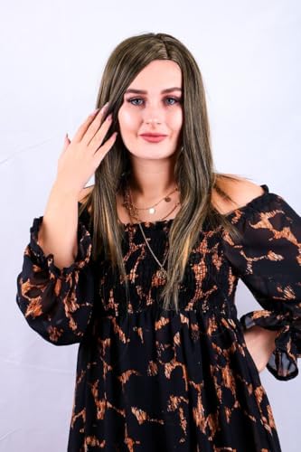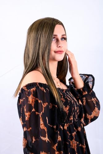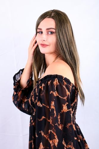 DILLARDS - DILLARDS Synthetic Long Straight Hair Wig, Dark Brown with Blonde Highlights, Heat-Resistant Fiber, Natural Looking, Off-Shoulder Style