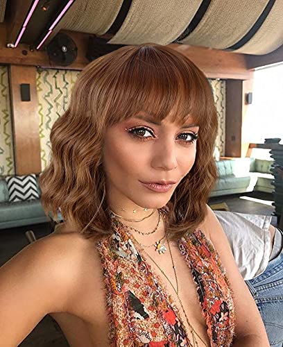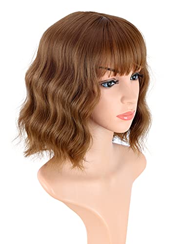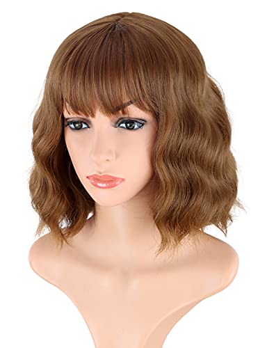 DILLARDS - DILLARDS Volanqi Short Brown Wavy Wigs For Women Synthetic Wavy Wigs With Bangs Daily Use Wigs Cosplay Wigs (Brown-10/12/30#)