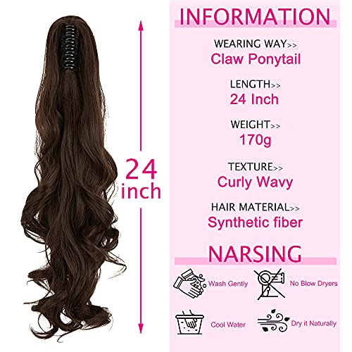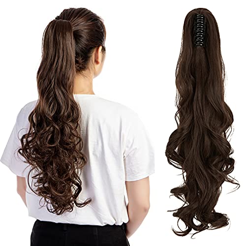 DILLARDS - DILLARDS Vorcy Long Short Hair Extension Cute Clip In On Ponytail Jaw/Claw Synthetic Straight Curly Hairpieces (24In, Medium Brown)