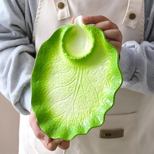 - Unique lettuce leaf design adds a creative, natural touch to the table. The vibrant green porcelain shape closely resembles real lettuce, combining functionality with artistic presentation for an appealing dining experience.