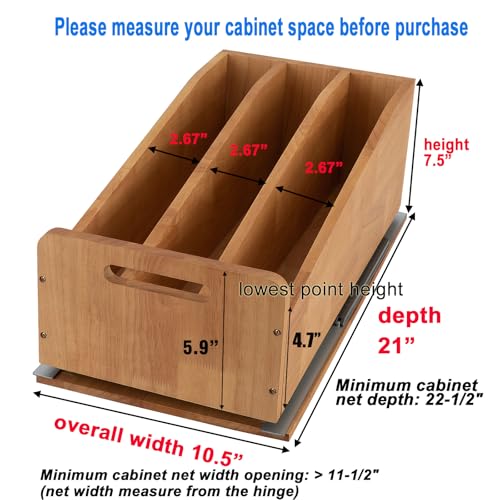 - Solid wood slide out cabinet organizer, have 3 compartment rack: fit for pot lid, cutting board, cookie sheet, pan, bakeware organization