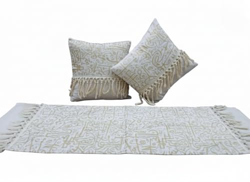 Generic - Dining Decor Set Rectangle Runner with 2 Pillow Covers Luxury Embossed Side Tassel
