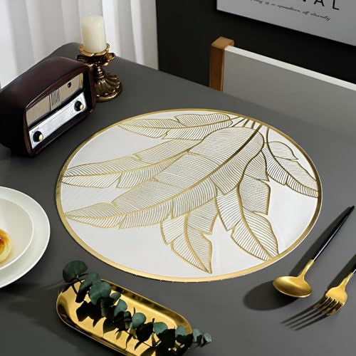 Generic - Dining Table Mats - Luxurious Gold Placemats Set of 6 Made of Durable PVC with Washable White Finish, Ideal for Wedding Décor and Sophisticated Meals, 38 CM Diameter