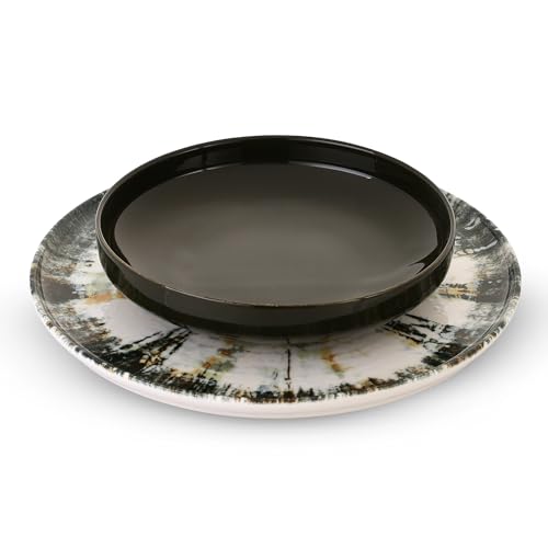 - DUAL-TONE STYLING: Contrasting black interior bowls paired with patterned exterior plates offer sophisticated modern aesthetic