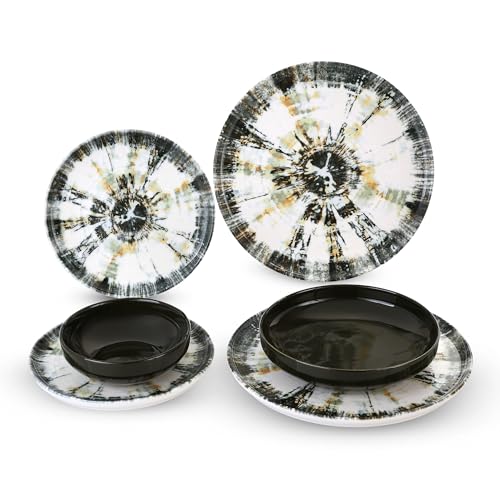 - COMPLETE SET: 24-piece porcelain dinner set includes service for 6 persons, featuring plates and bowls in coordinating tie-dye design