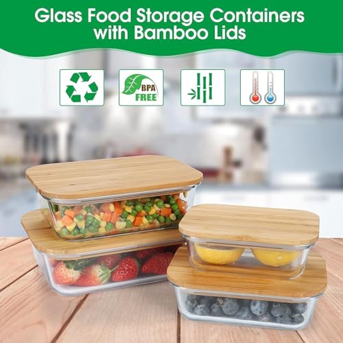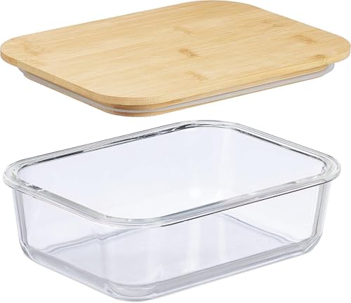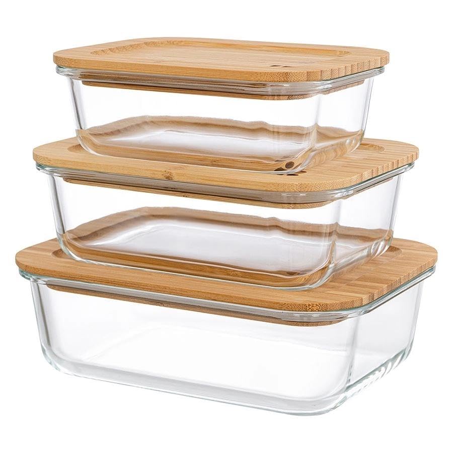 Generic - Dinnerware - 3-piece thermal resistant glass cookware with secure bamboo closure, spill resistant opening, ideal for oven-bake recipes, picnic side dishes, student use, fridge meals storage