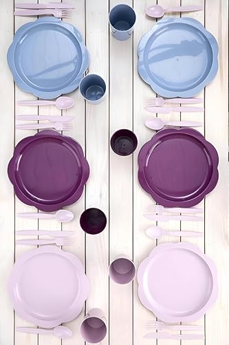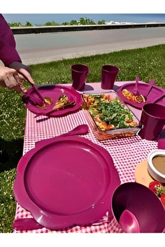 • This 32-piece plastic travel set includes durable, food-safe materials resistant to breaking, making it ideal for outdoor activities and ensuring longevity over multiple adventures. The comprehensive set features plates, cups, utensils, seasonings, and a storage box, providing everything needed for organized meals during trips.