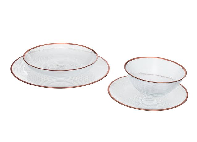 - ELEGANT DESIGN: Features a sophisticated white finish with rose gold rim accents and textured circular pattern that adds a modern, luxurious touch to any table setting