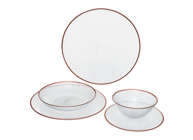 - COORDINATED COLLECTION: All 25 pieces feature matching rose gold trim and textured detailing for a cohesive, stylish presentation at breakfast, lunch, or dinner