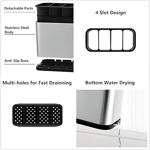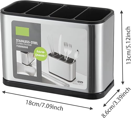 - تتميز بسعة كبيرة تبلغ 18 × 13 × 8.6 سم، كافية لتخزين جميع أدوات المطبخ اليومية، مثل الملاعق والأشواك والسكاكين والكتابات، مما يساعد على توفير مساحة في الأدراج وتقليل الفوضى على سطح الطاولة.