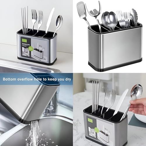 - مصفاة أدوات تناول الطعام من الستانلس ستيل لحوض المطبخ وأدوات المائدة رف تجفيف سلة منظم أدوات المائدة حامل تخزين أدوات المطبخ لطاولة الطعام والملاعق والشوك وعيدان الطعام