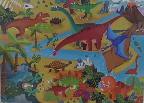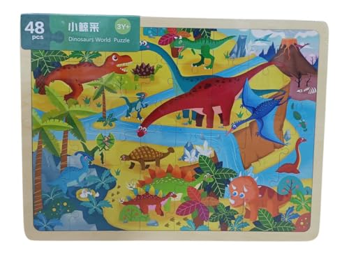 Generic - Dinosaur World Kid’s Puzzle, 48-Pieces for 3-Years-Old+ - Promotes Dexterity, Problem-Solving, and Creativity -Durable Wooden Puzzle Kit.