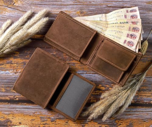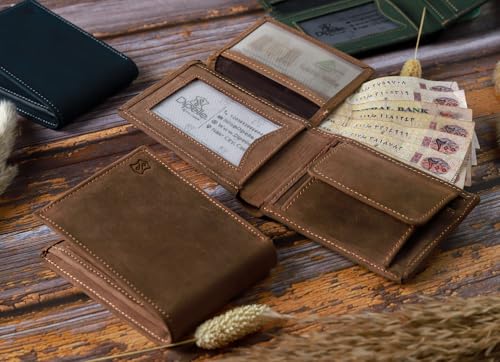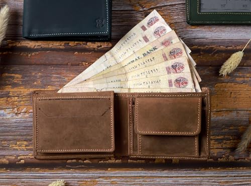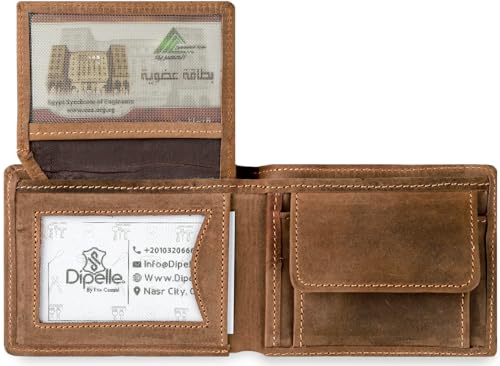 Dipelle - Dipelle Genuine Leather Wallet for Men with Coin Pocket, Folding ID Window, Slim Bifold Wallet for Front Pocket or Back Pocket Credit Card Holder for Men Luxury and Elegant Gifts (Lubricated Hazelnut)