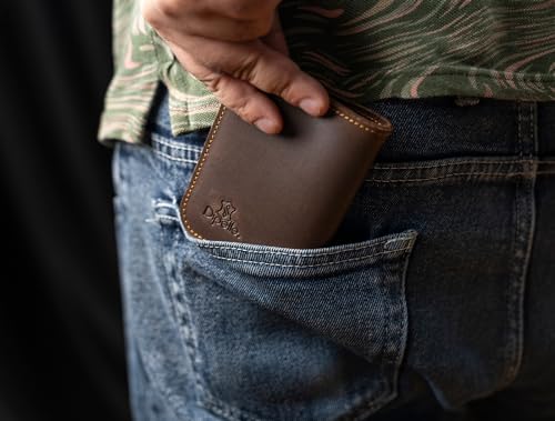 - ★ lim minimalist leather wallet with simple solid construction, this wallet is built to last a lifetime. Conceived to take up as little space as possible, our Arizona card holder is extremely small. Not only comfortable to carry, but for its size, it packs a staggering capacity, holding 7 cards in the main pocket plus a quick-access card, and half a dozen folded bills