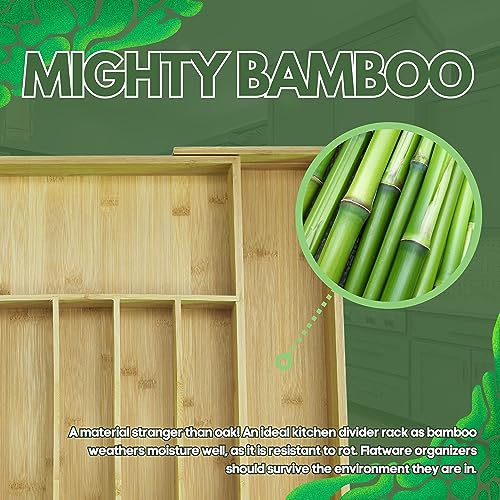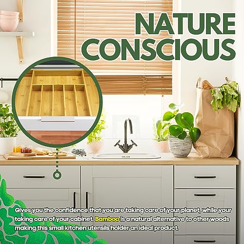 - [وعي الطبيعة] - قم بشراء منظم أدراج أدوات المائدة المصنوع من البامبو، فهو سيمنحك الثقة بأنك تعتني بكوكبك، بينما تعتني بخزانتك. البامبو هو بديل طبيعي للأخشاب الأخرى مما يجعل حامل أدوات المطبخ الصغير هذا منتجًا مثاليًا.