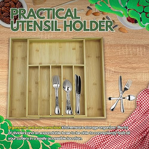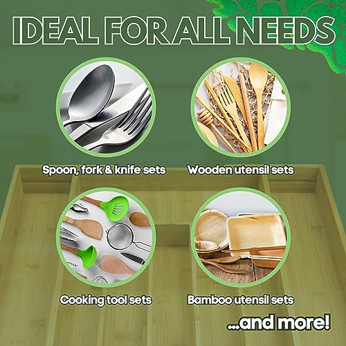 - [حامل أدوات عملي] - درج البامبو هذا هو منظم تخزين أدوات مطبخ مريح وصديق للبيئة. بفضل الفواصل الكثيرة والقاعدة القابلة للتوسيع، ستتمكن من حمل جميع أدوات المائدة الخاصة بك بسهولة في مكان يسهل الوصول إليه. حاويات خشبية للمطبخ.
